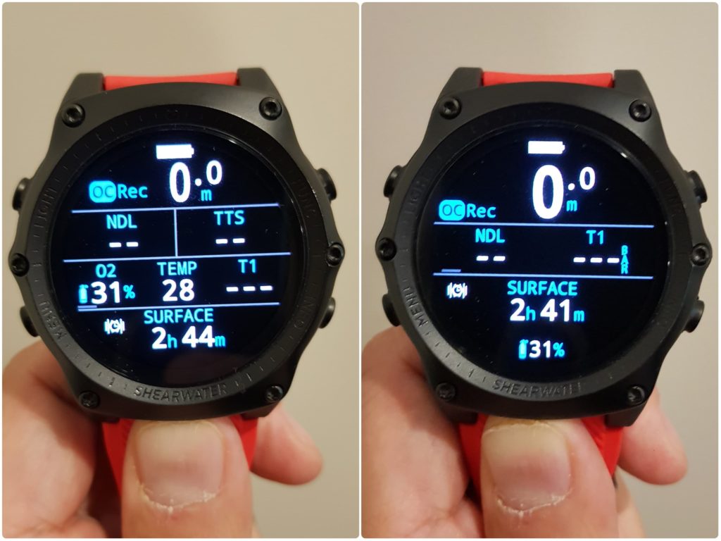 There is also no “no-fly” indicator or timer. Instead, there is a surface interval timer. Divers should evaluate their situation and use an appropriate preflight surface interval. Shearwater list their reason for doing so HERE and it makes good sense