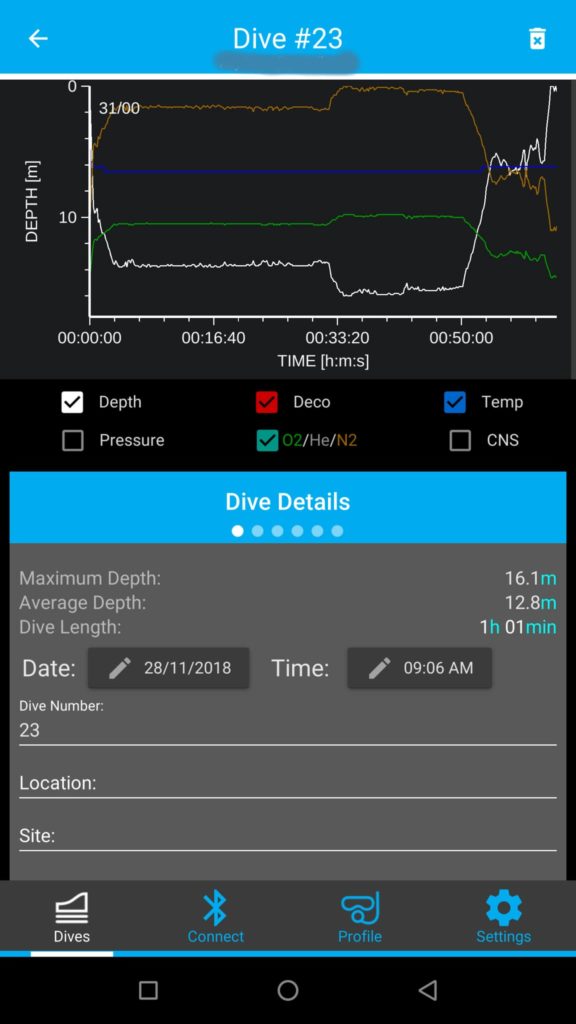 Finally, it should be noted that syncing to the app via bluetooth is painfully slow and unreliable. Dive log uploads and firmware updates via bluetooth were very slow. However when it works, it’s fine.